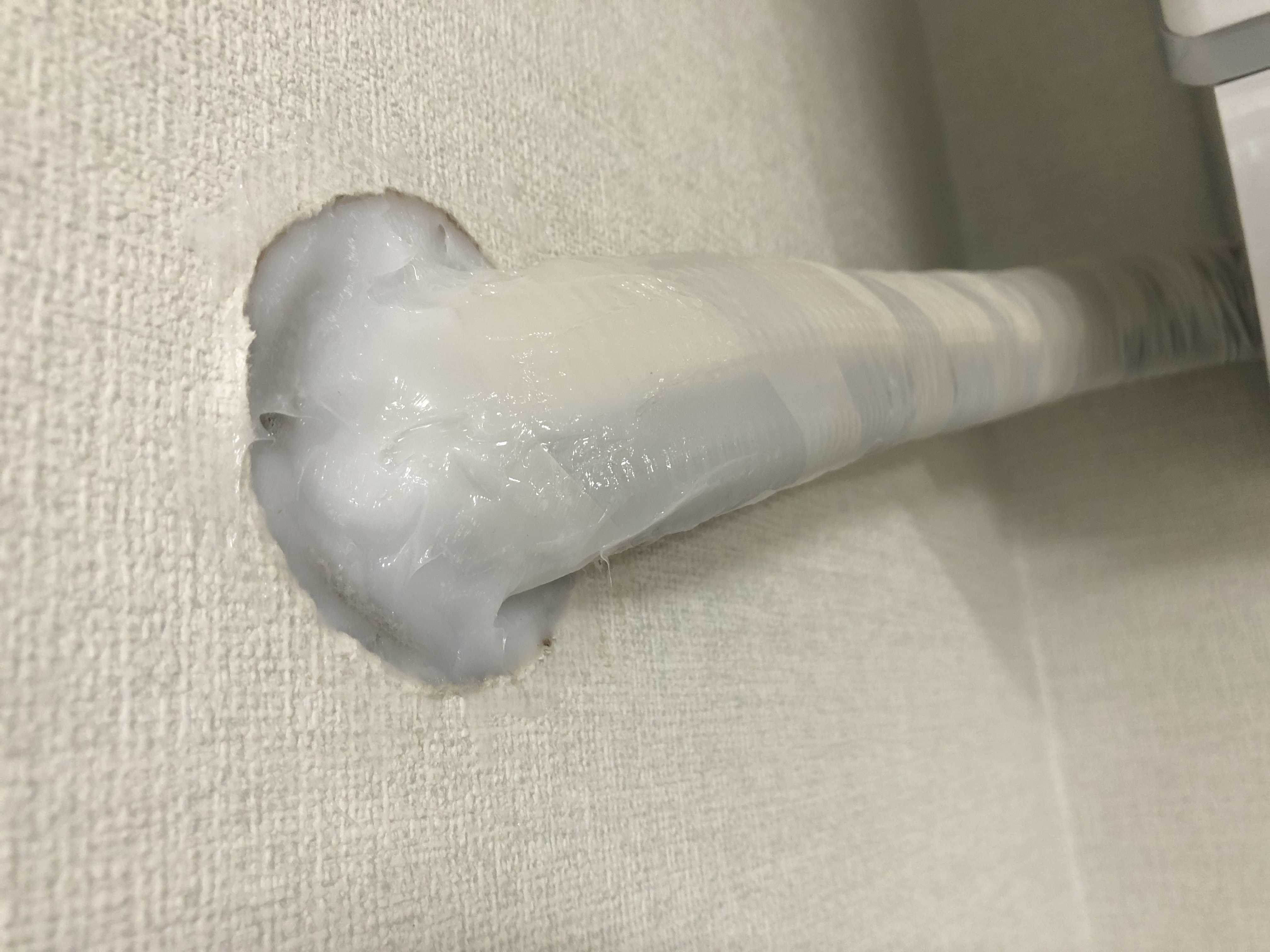 기사님이 오셔서 벽을 뚫으시는데 에어컨 호스가 빠질 수 있도록 건축할 때 기본으로 가이드를 잡아 놓았더라. 해당 부분에 정확하게 구멍을 뚫는데 봉지를 씌우고 하니 먼지가 전혀 날리지 않았다. 신기하다.