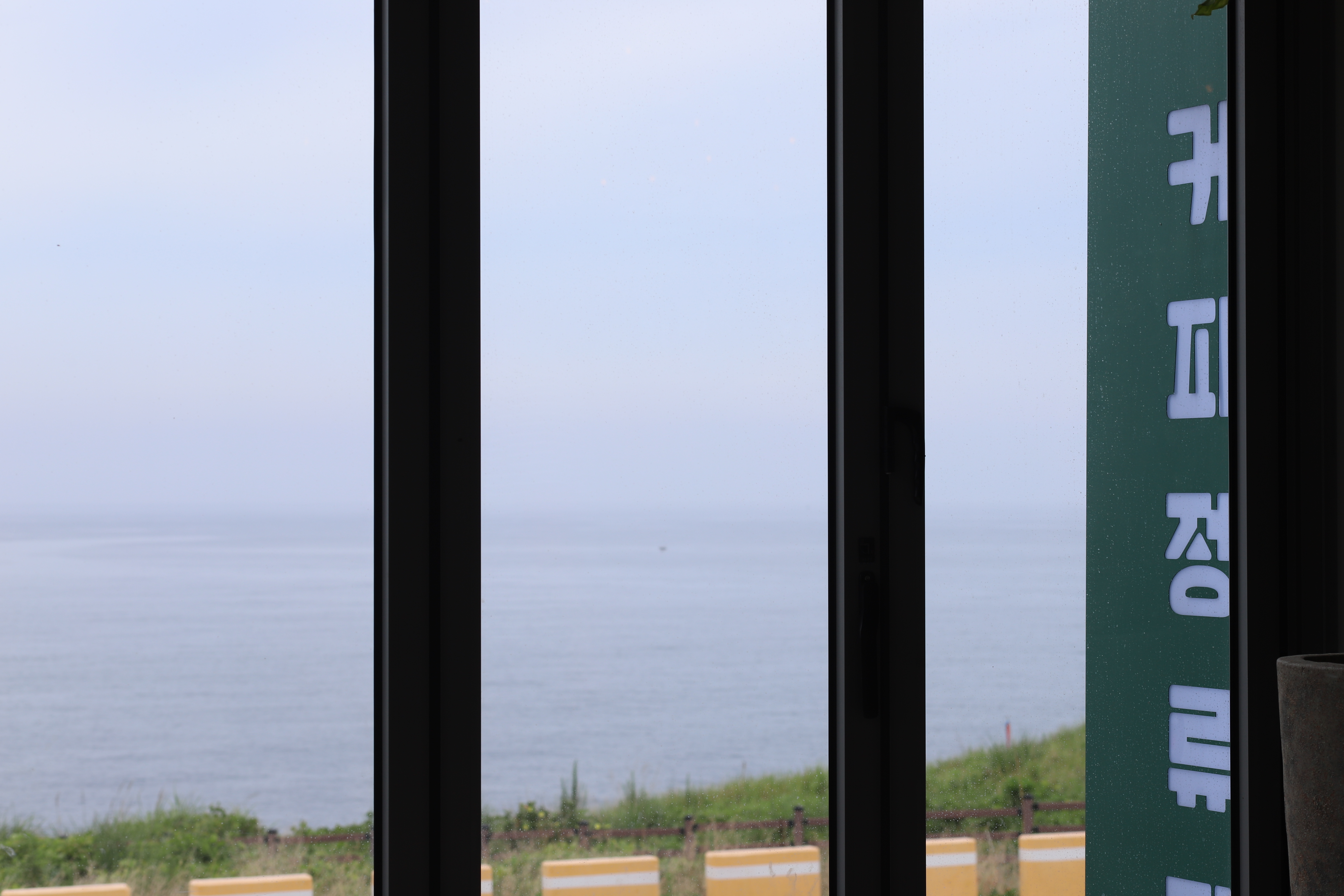 몇 번 가보지 않은 제주이지만 갈 때마다 느끼는 것이 제주는 참 카페가 많다. 어딜 봐도 바다가 보이고 깨끗하니 바닷가 옆 아무곳이나 카페를 오픈 해도 멋진 풍광을 보여준다. 너무 햇빛 정면이라 구름이 잔뜩 낀 날임에도 불구하고 눈이 상당히 부셨던 기억이 있다.
